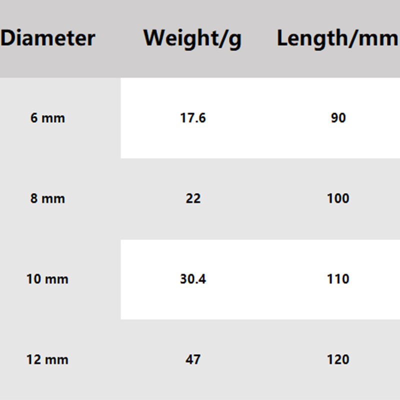 Diameter: 6 mm, 8 mm, 10 mm, 12 mm