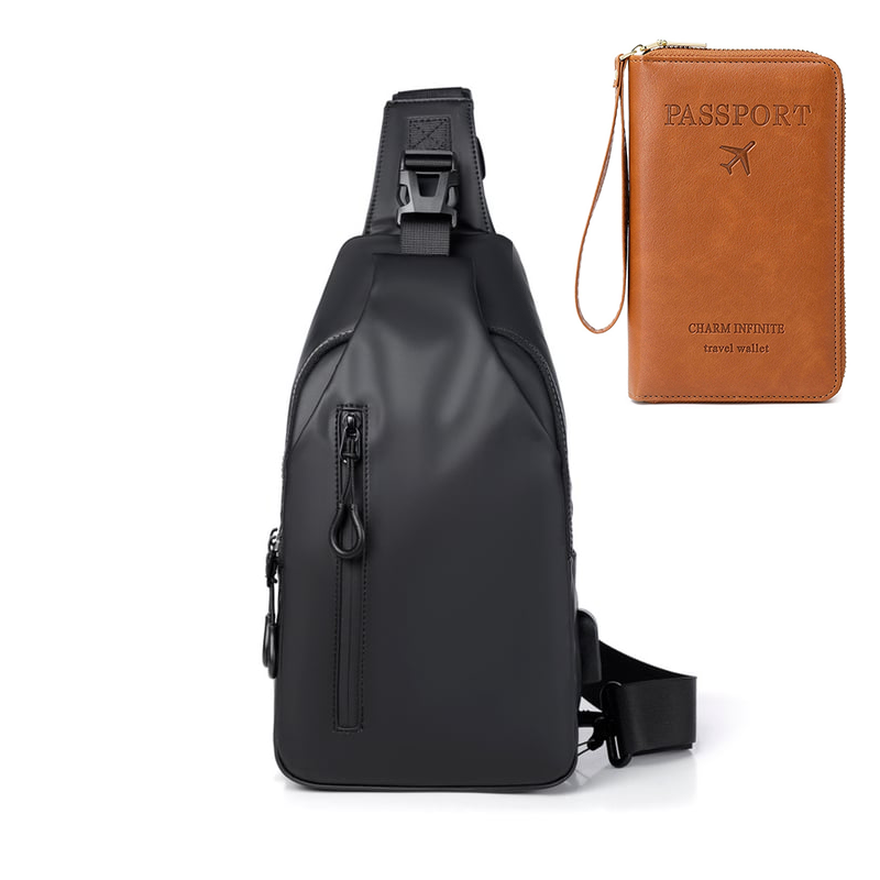 【Inbyggt USB-gränssnitt】 Den här axelväskan har en inbyggd USB-port så att du inte behöver oroa dig för sladdar.