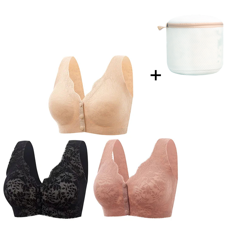 (Köp 1 få 3 gratis)Kvinnors spets frontknapp stor storlek stålring underkläder