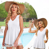 1 × Kvinnors casual ärmlös topp med V-hals, volang och blommig