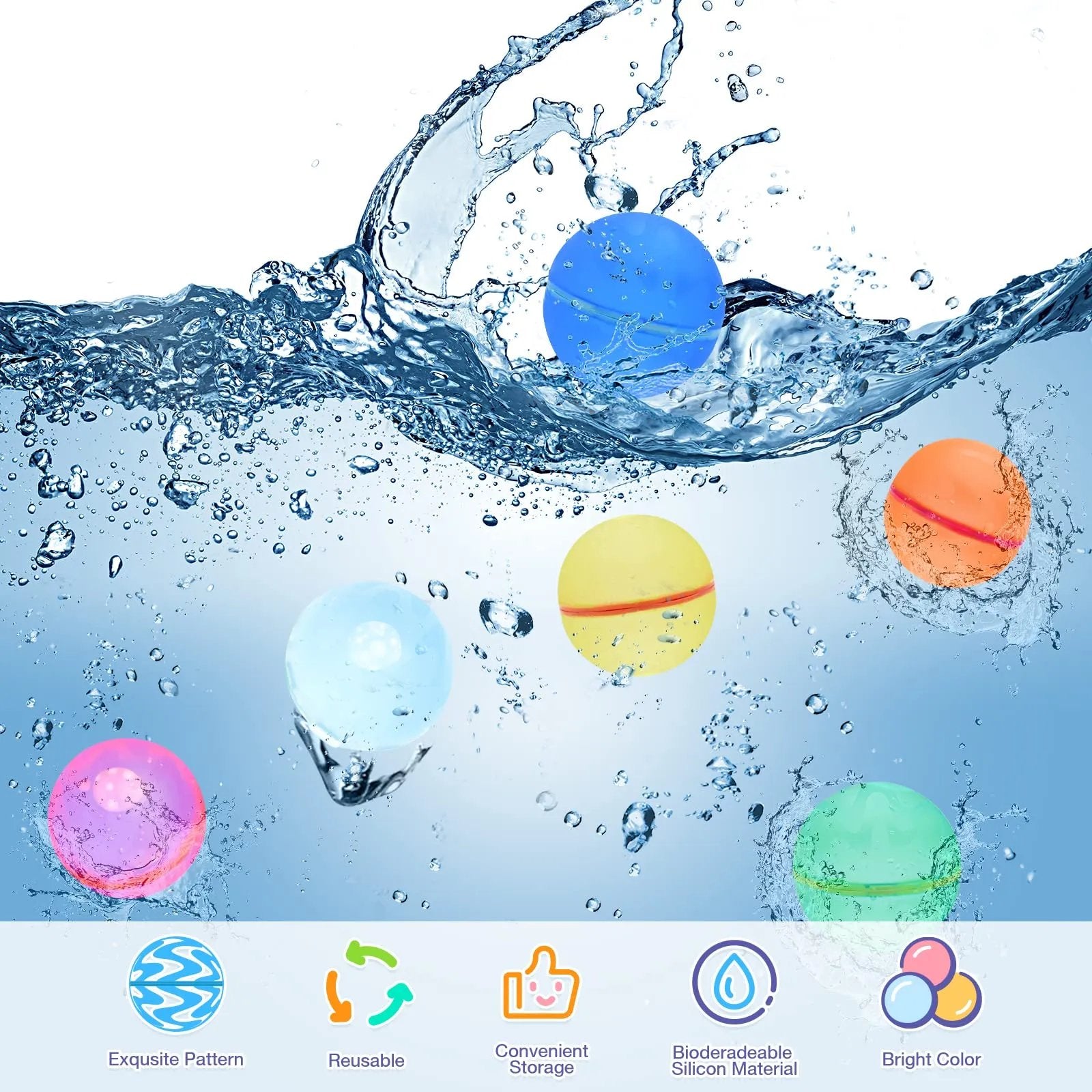 VÄra ÄteranvÀndbara vattenballonger Àr gjorda av hög mjuk kvalitet och Ätervunnet kisel, det Àr miljösÀkert och sÀkert runt djur. Den granatliknande bollens mjuka hud betyder att den kommer att explodera vid kontakt utan skador.