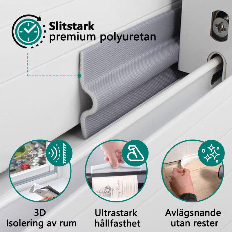 Tätningslist för skjutdörrar och fönster, ljudisolerad självhäftande spalt, vindtät dammtätningslist